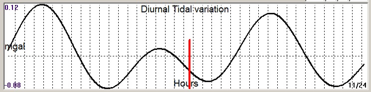 Fig. 3. Diurnal (K2) tidal variation (black line) v.s time of occurrence (red bar) of the EQ.