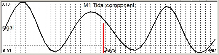 Fig. 2. M1 tidal variation (black line) v.s time of occurrence (red bar) of the EQ.