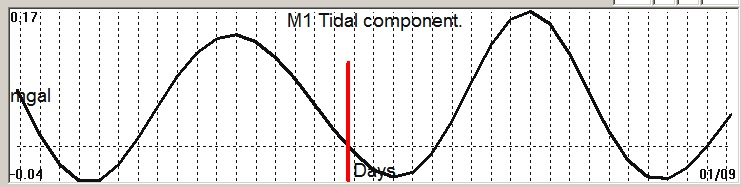Fig. 2. M1 tidal variation (black line) v.s time of occurrence (red bar) of the EQ.