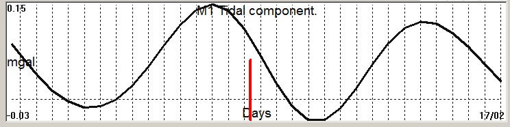 Fig. 2. M1 tidal variation (black line) v.s time of occurrence (red bar) of the EQ.