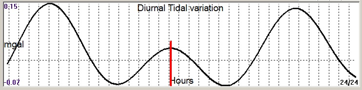 Fig. 3. Diurnal (K2) tidal variation (black line) v.s time of occurrence (red bar) of the EQ.
