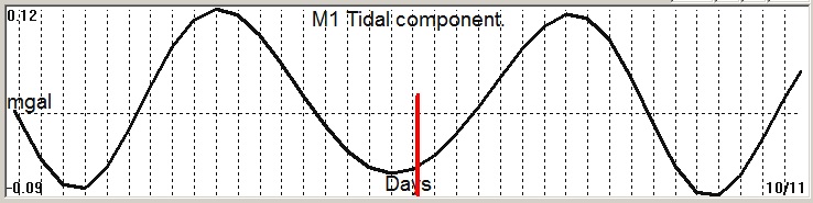 Fig. 2. M1 tidal variation (black line) v.s time of occurrence (red bar) of the EQ.