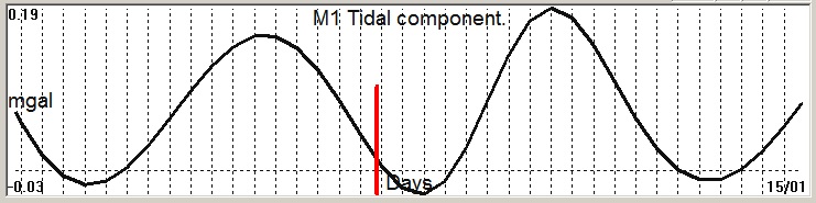 Fig. 2. M1 tidal variation (black line) v.s time of occurrence (red bar) of the EQ.