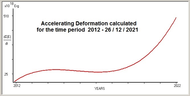 Fig. 5. Accelerating deformation calculated for the regional (R=150Km) epicentral area for the time period 2012 - 26 / 12 / 2021