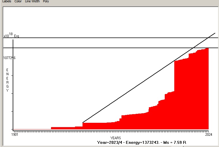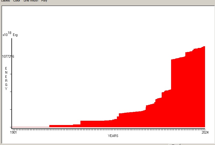 Fig. 4. Cummulative Seismic Energy Release (CSER) since 1901 in 1 month sampling interval.