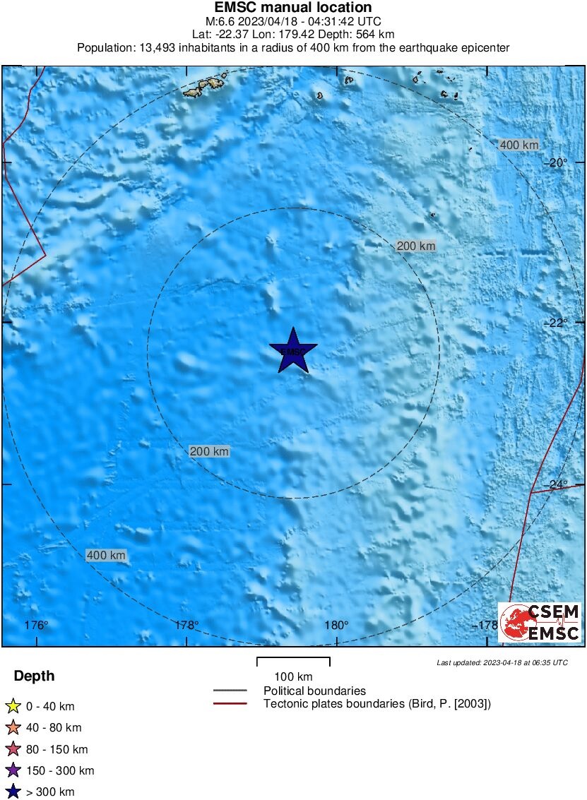 M 6.6 - SOUTH OF FIJI ISLANDS - 2023-04-18 04:31:42 UTC'