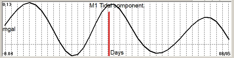 Fig. 2. M1 tidal variation (black line) v.s time of occurrence (red bar) of the EQ.