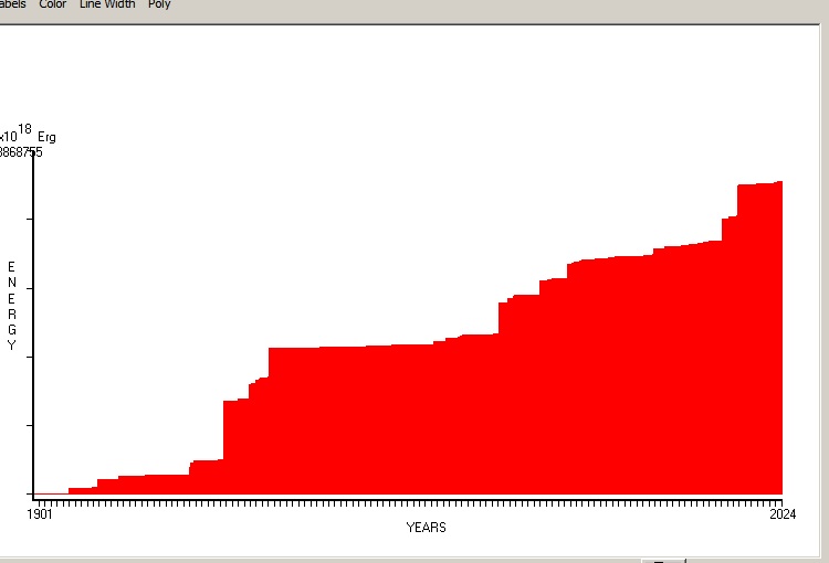 Fig. 4. Cummulative Seismic Energy Release (CSER) since 1901 in 1 month sampling interval.