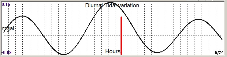 Fig. 3. Diurnal (K2) tidal variation (black line) v.s time of occurrence (red bar) of the EQ.