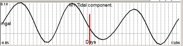Fig. 2. M1 tidal variation (black line) v.s time of occurrence (red bar) of the EQ.