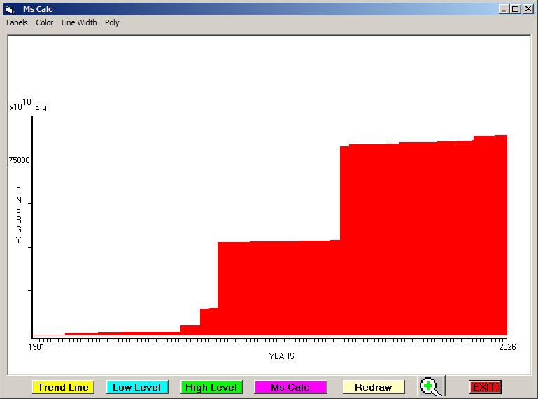Fig. 4. Cummulative Seismic Energy Release (CSER) since 1901 in 1 month sampling interval.