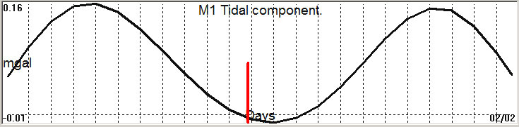 Fig. 2. M1 tidal variation (black line) v.s time of occurrence (red bar) of the EQ.