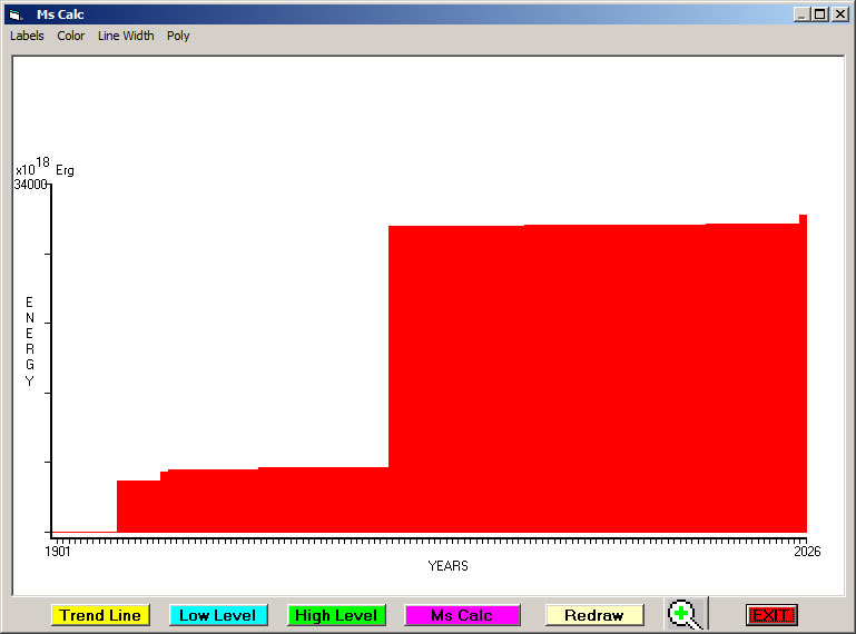 Fig. 4. Cummulative Seismic Energy Release (CSER) since 1901 in 1 month sampling interval.