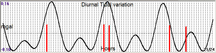 Fig. 3. Diurnal (K2) tidal variation (black line) v.s time of occurrence (red bar) of the EQ.