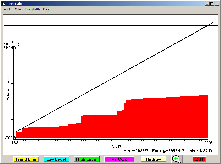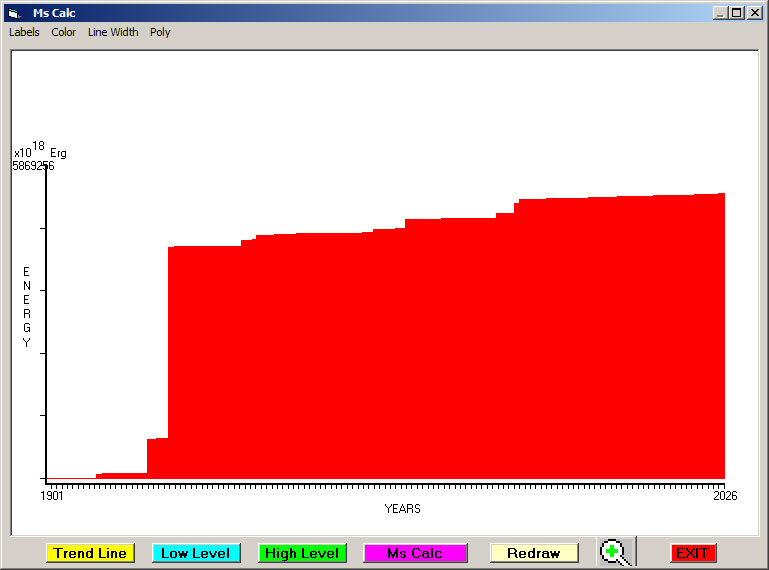 Fig. 4. Cummulative Seismic Energy Release (CSER) since 1901 in 1 month sampling interval.