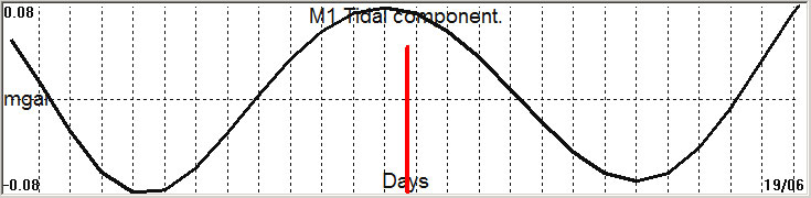 Fig. 2. M1 tidal variation (black line) v.s time of occurrence (red bar) of the EQ.