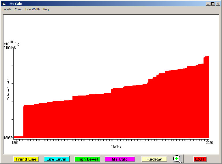 Fig. 4. Cummulative Seismic Energy Release (CSER) since 1901 in 1 month sampling interval.