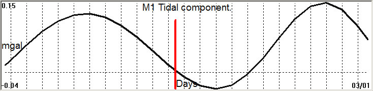 Fig. 2. M1 tidal variation (black line) v.s time of occurrence (red bar) of the EQ.