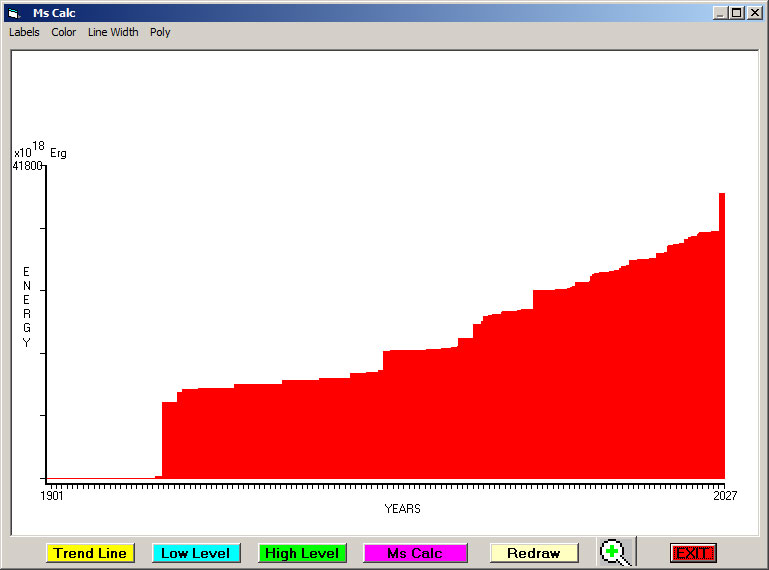 Fig. 4. Cummulative Seismic Energy Release (CSER) since 1901 in 1 month sampling interval.