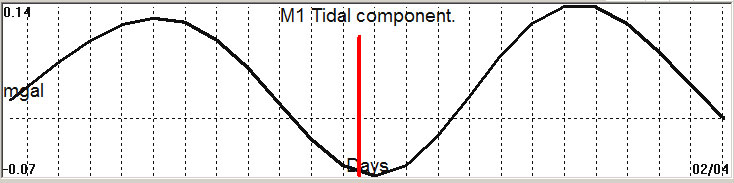 Fig. 2. M1 tidal variation (black line) v.s time of occurrence (red bar) of the EQ.