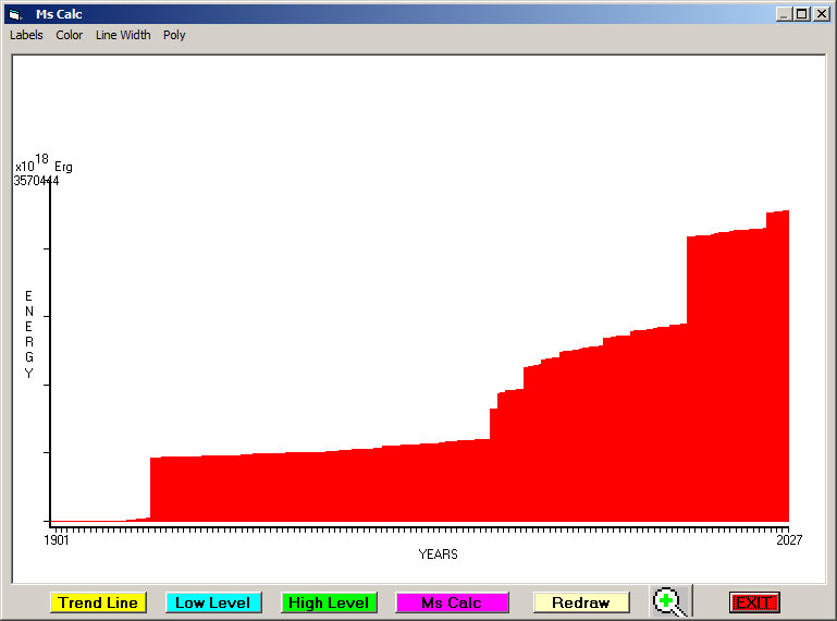 Fig. 4. Cummulative Seismic Energy Release (CSER) since 1901 in 1 month sampling interval.