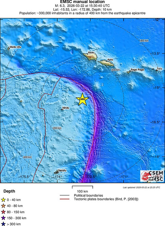 M 6.3 SAMOA ISLANDS REGION 2026-03-22 15:30:40 UTC