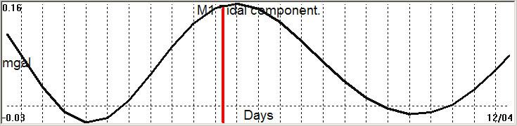 Fig. 2. M1 tidal variation (black line) v.s time of occurrence (red bar) of the EQ.