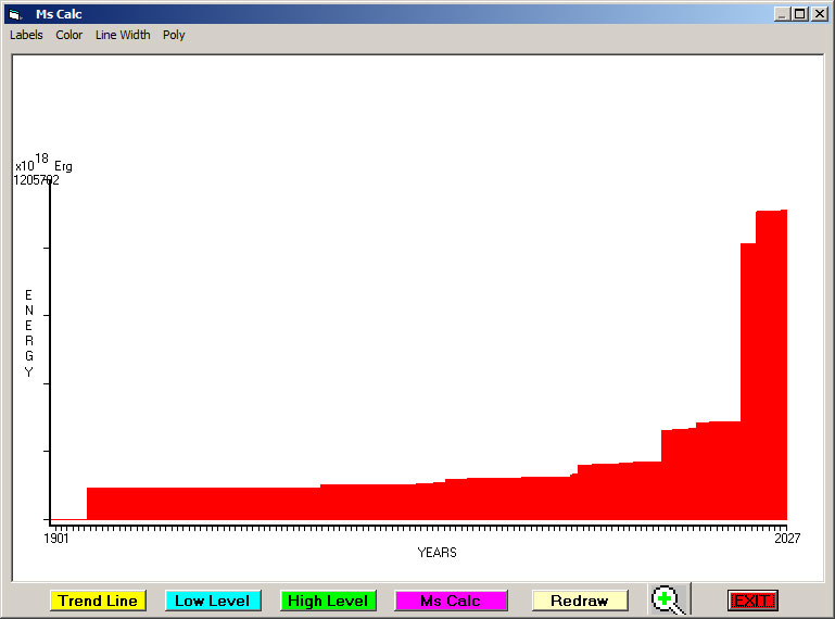 Fig. 4. Cummulative Seismic Energy Release (CSER) since 1901 in 1 month sampling interval.